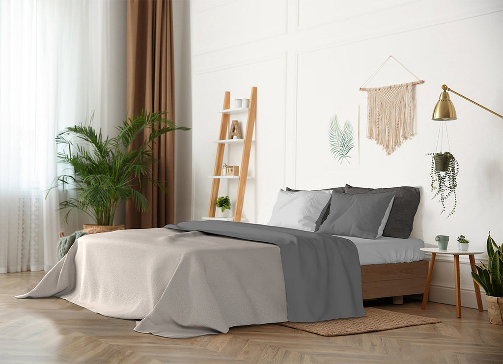 Set aus wendbaren Oberlaken und Kissenbezügen Hellgrau/Rauch