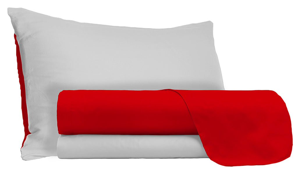 Satz Bettlaken oben und unten und Kissenbezüge Doubleface Rot/Hellgrau