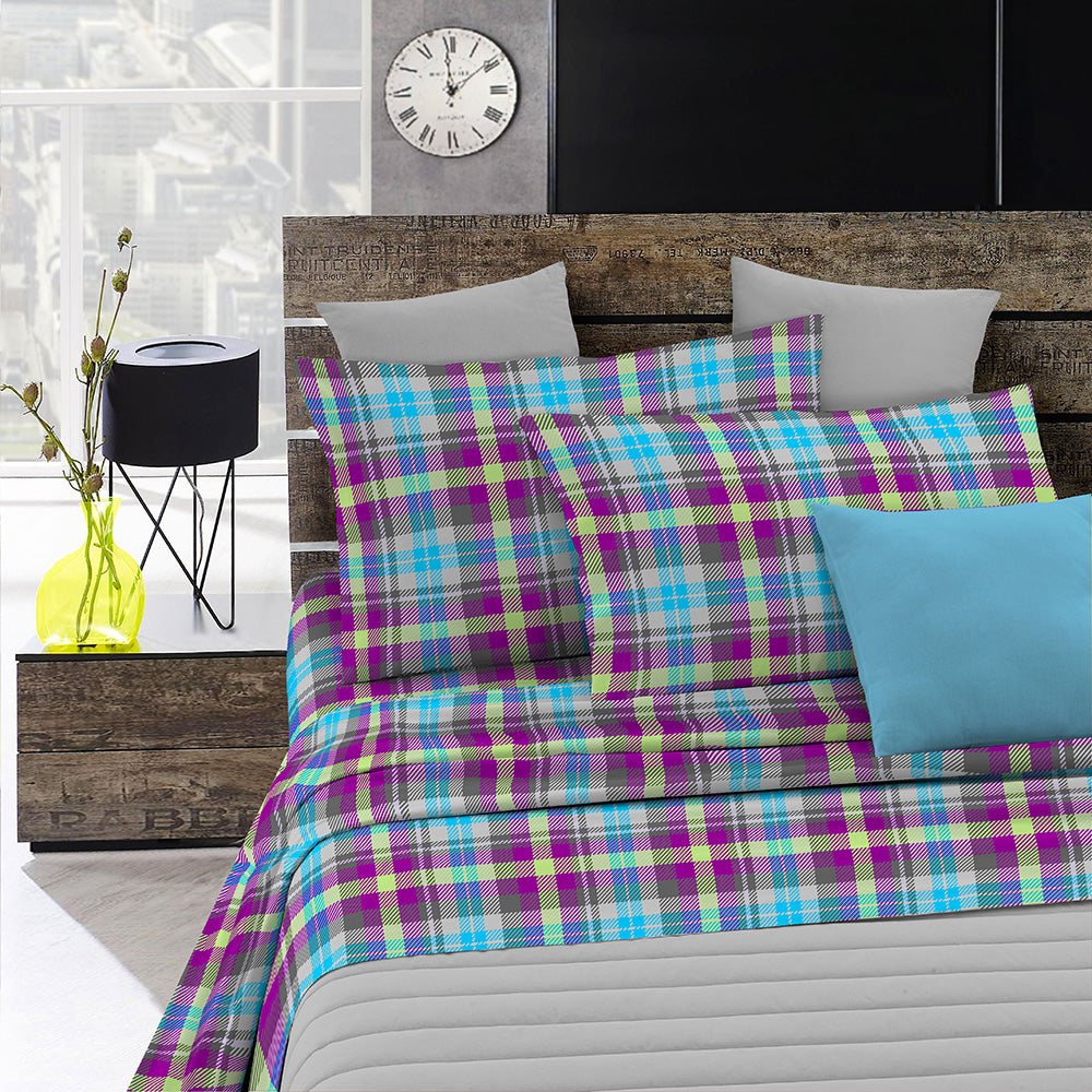 Bettwäsche-Set mit Aufdruck oben und unten und schottischen Kissenbezügen