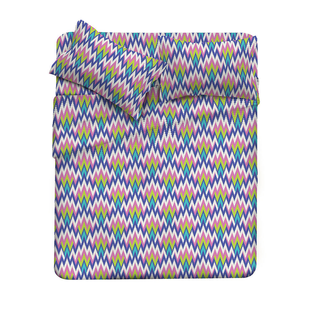 Bettlaken-Set mit Zickzack-Druck auf Ober- und Unterseite und Kissenbezügen