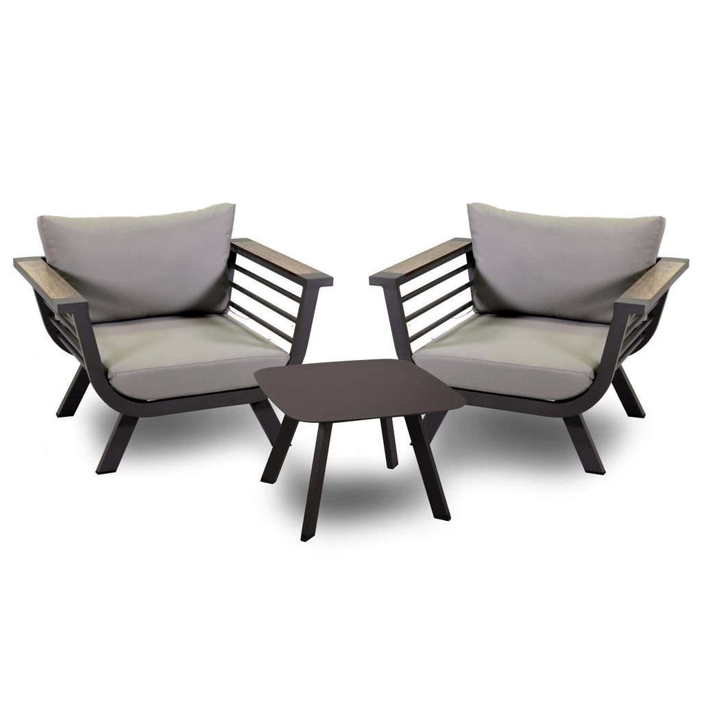 Set Salotto da Giardino 2 Poltrone e Tavolino in Alluminio Riverside Tortora