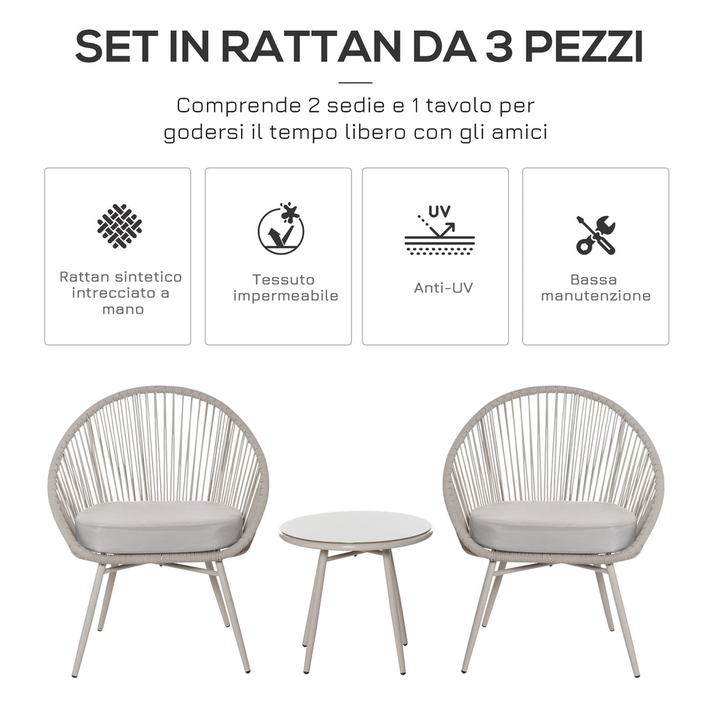 - 3-TEILIGES SET: Dieses Set beinhaltet 2 Stühle mit Sitzflächen aus Polyrattan und 1 passenden Couchtisch mit Platte aus gehärtetem Glas