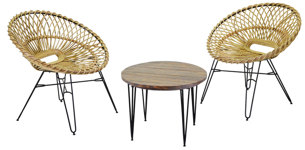 Garden Lounge Set 2 Sessel und Couchtisch aus Natural Moon Rattan