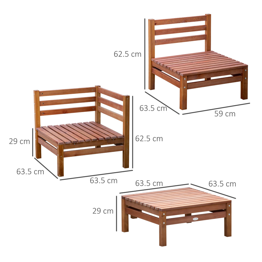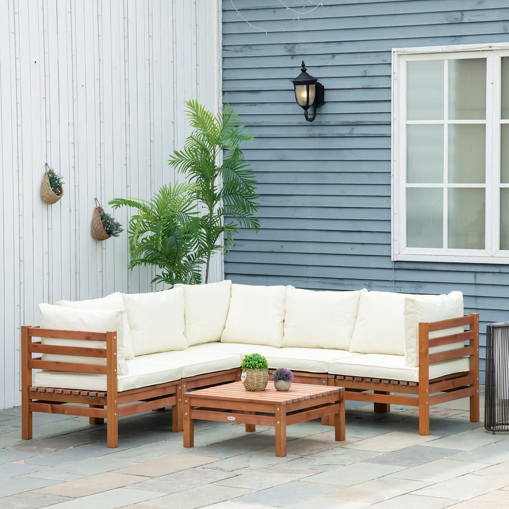 Set Salotto da Giardino con Divanetto Modulabile Cuscini e Tavolino in Legno