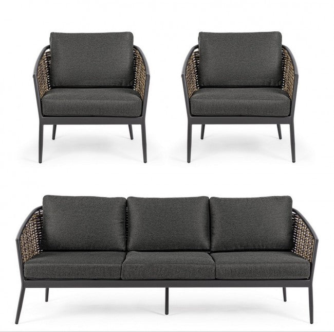 Set Salotto da Giardino Divano 2 Poltrone con Cuscini Maribela Antracite