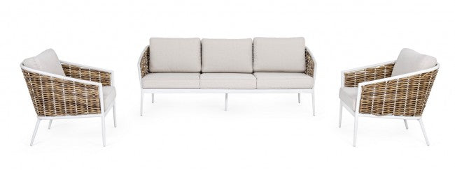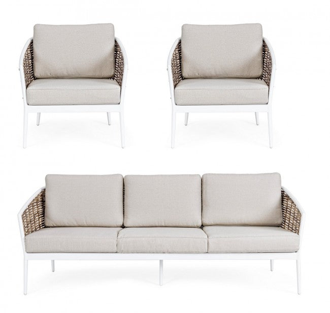 Set Salotto da Giardino Divano 2 Poltrone con Cuscini Maribela Bianco