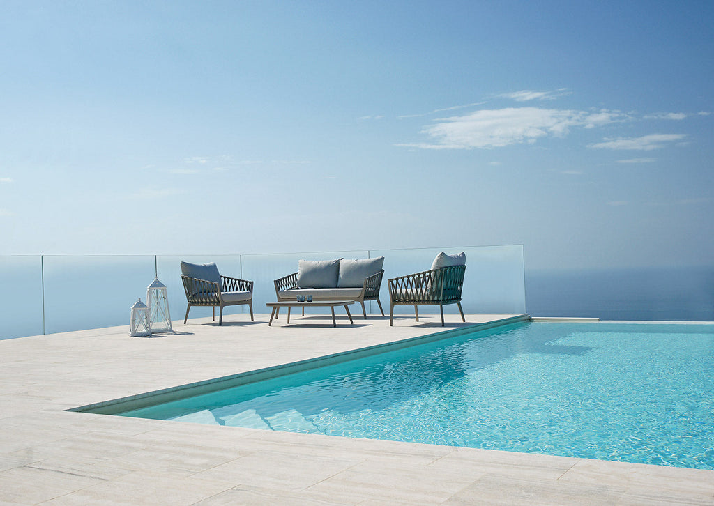 Garden Lounge Set Sofa 2 Sessel und Couchtisch mit hellgrauen Kissen
