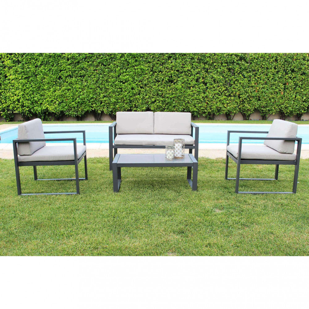 Garden Lounge Set Sofa 2 Sessel und Couchtisch mit Kissen in anthrazitfarbenem Aluminium