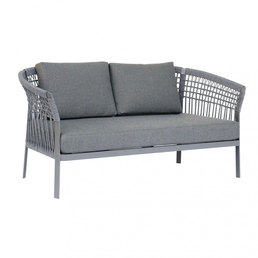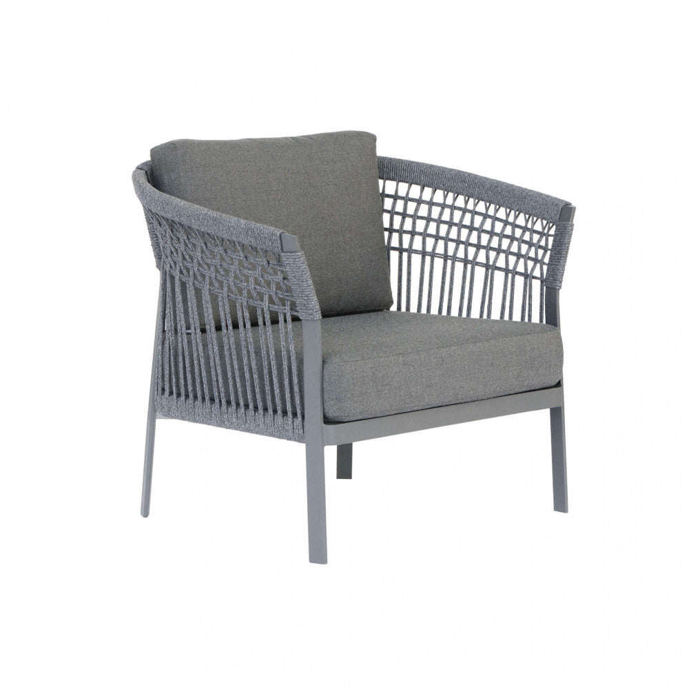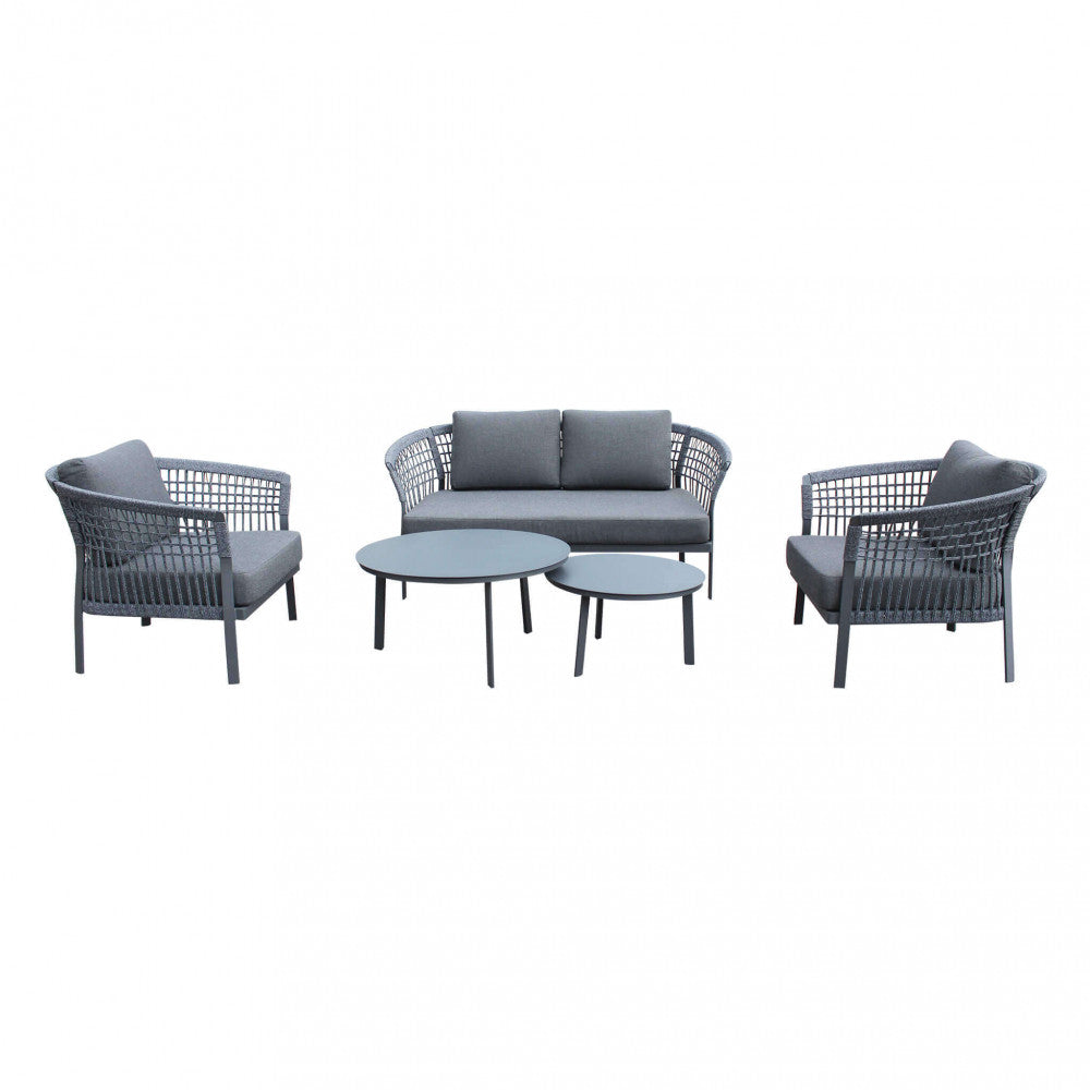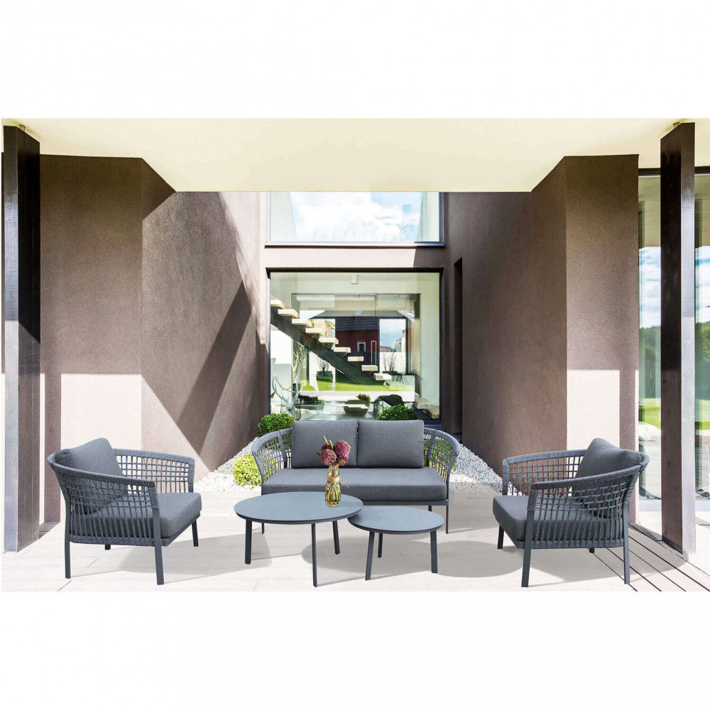 Garden Lounge Set Sofa 2 Sessel und Couchtisch mit Kissen in anthrazitfarbenem Aluminium