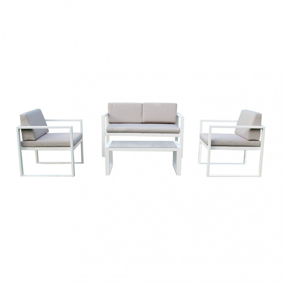 Garden Lounge Set Sofa 2 Sessel und Couchtisch mit Kissen aus weißem Aluminium