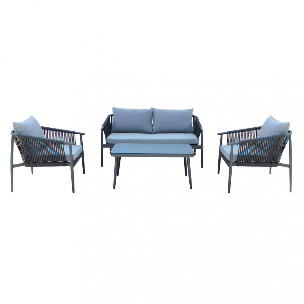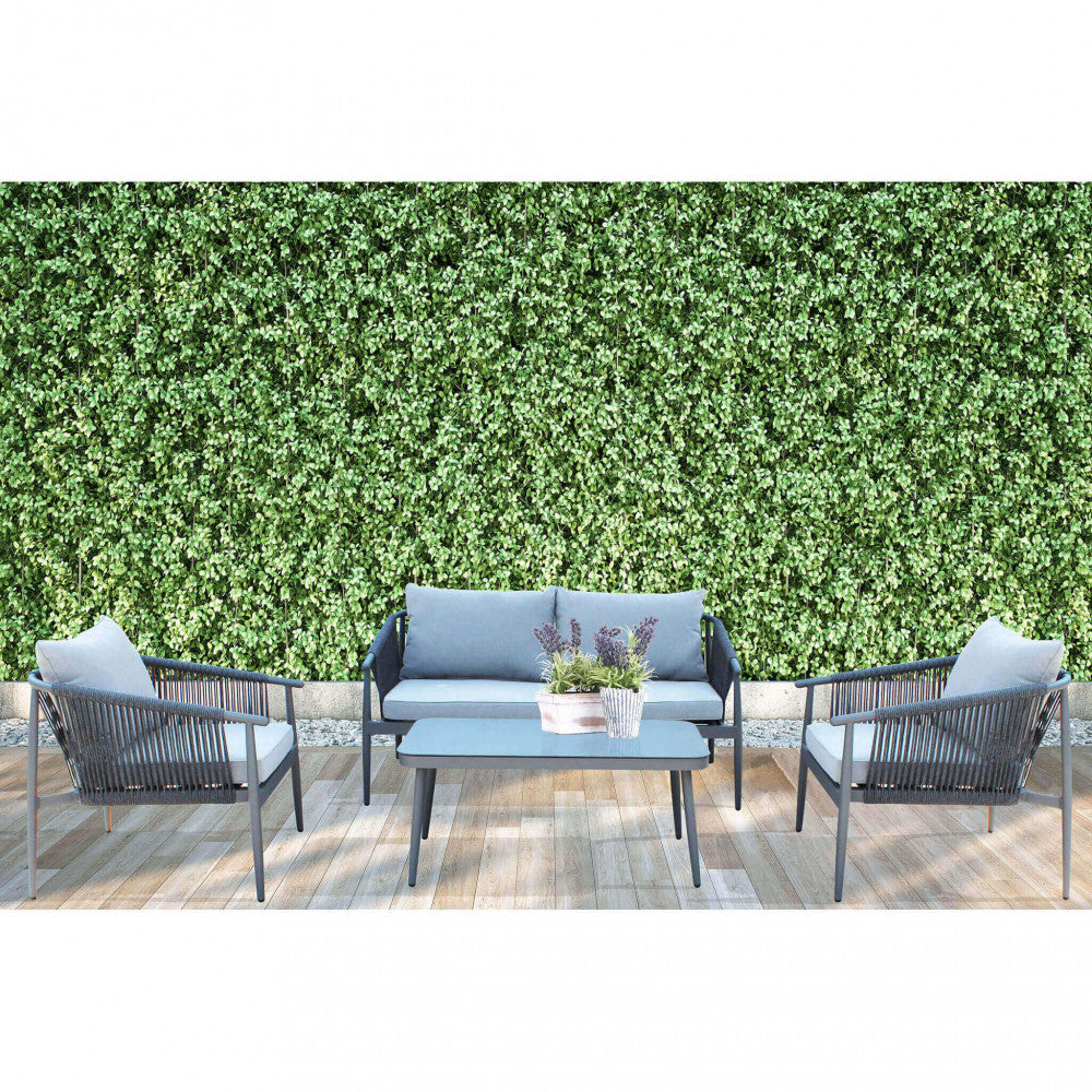 Garden Lounge Set Sofa 2 Sessel und Couchtisch mit Kissen aus dunkelgrauem Aluminium