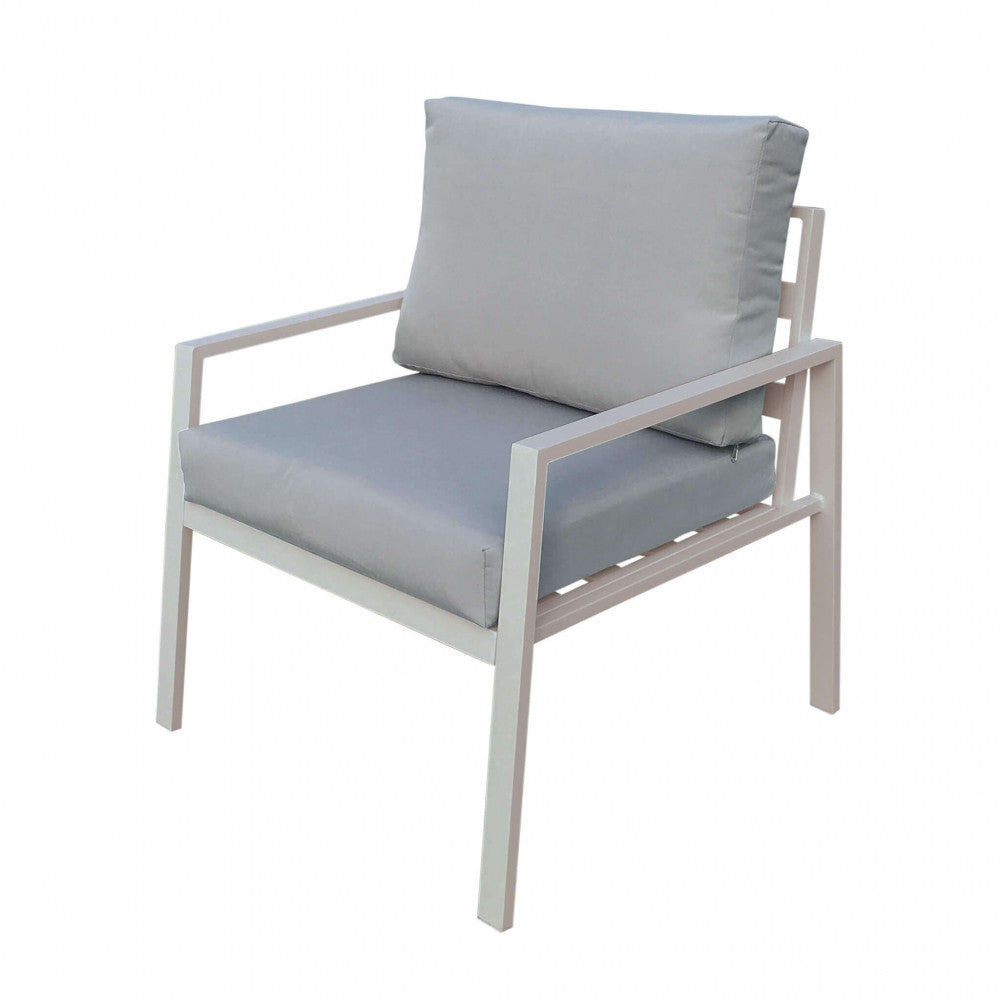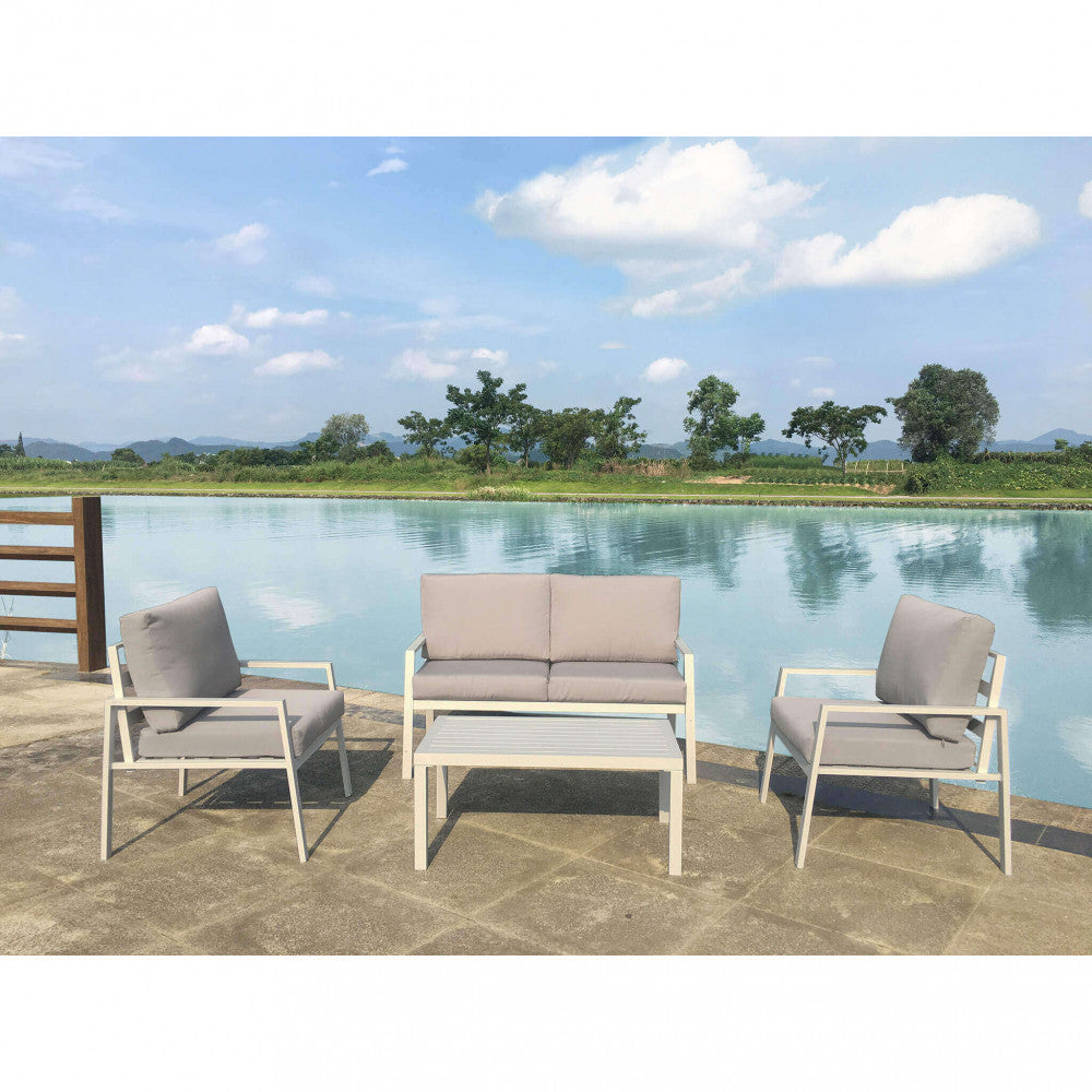 Garden Lounge Set Sofa 2 Sessel und Couchtisch mit Kissen aus taubengrauem Aluminium