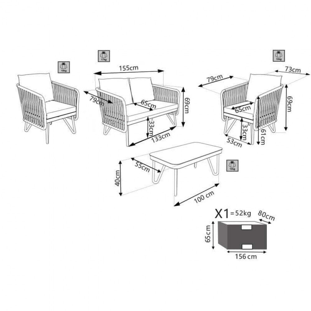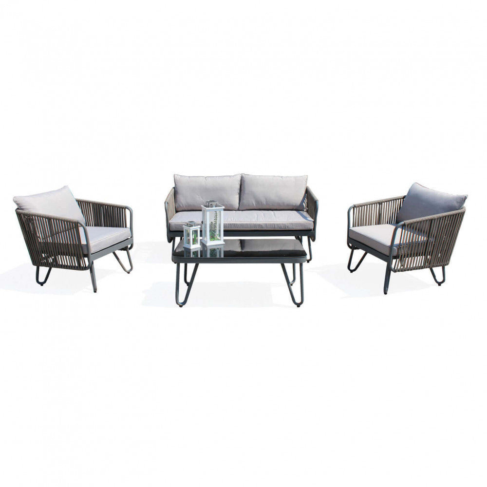 Garten-Lounge-Set, Sofa, 2 Sessel und Couchtisch mit Taubenseilkissen