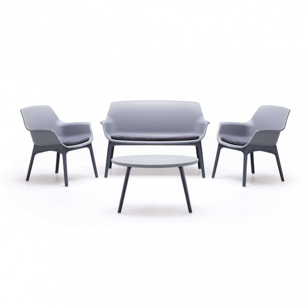 Garden Lounge Set Sofa 2 Sessel und Couchtisch mit Kissen aus grauem Kunststoff