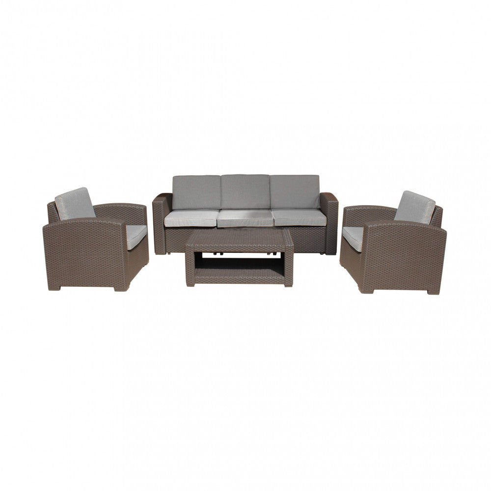 Garden Lounge Set Sofa 2 Sessel und Couchtisch mit Kissen aus taubengrauem Kunststoff