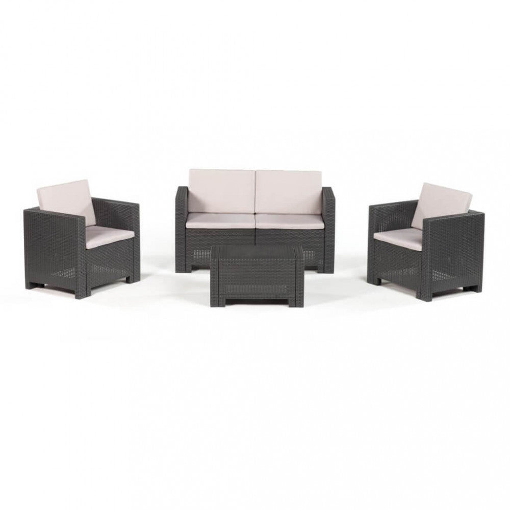 Garden Lounge Set Sofa 2 Sessel und Couchtisch mit Kissen aus schwarzem Polypropylen
