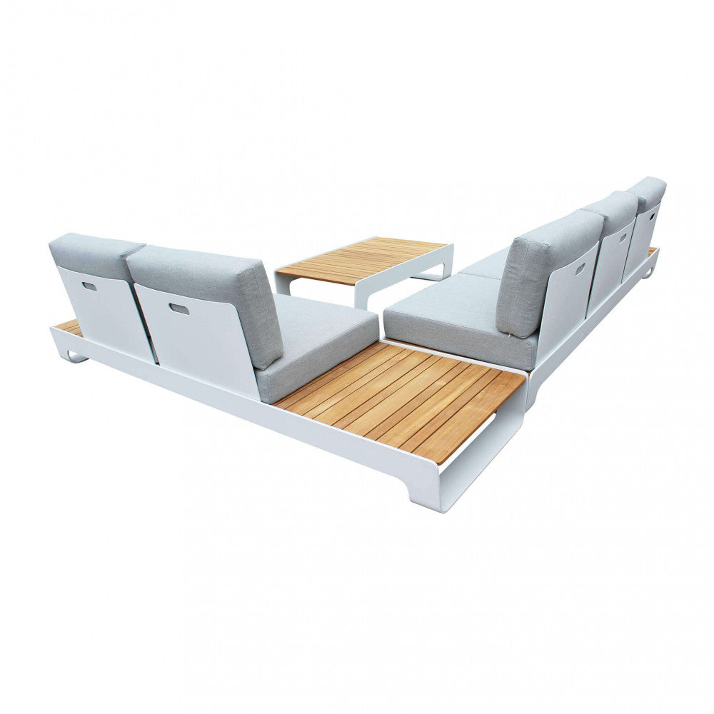Garden Lounge Set Sofa 2 Sessel und Couchtisch mit Kissen aus weißem Teakholz