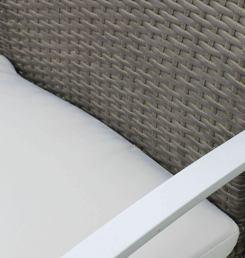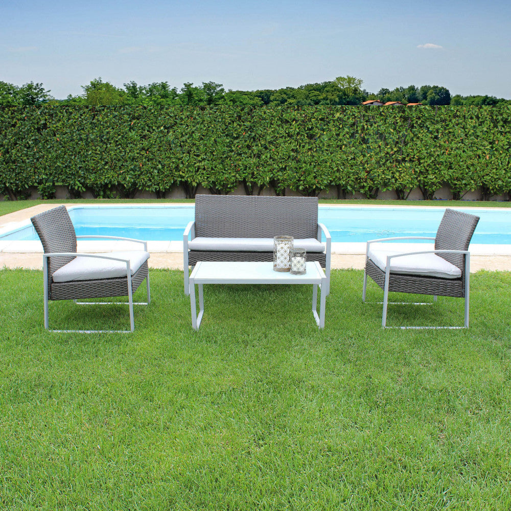 Garden Lounge Set Sofa 2 Sessel und Couchtisch mit Kissen aus grauem Korbgeflecht