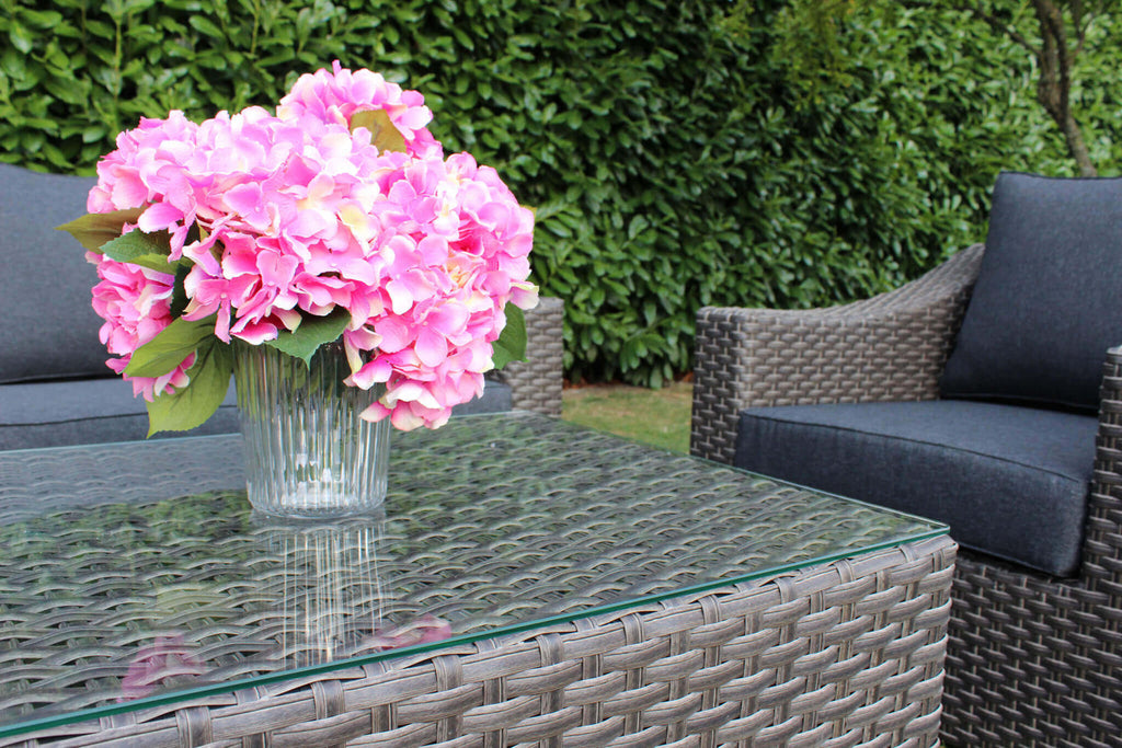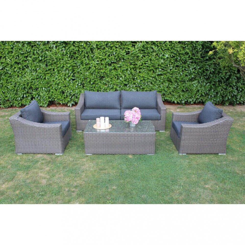 Garden Lounge Set Sofa 2 Sessel und Couchtisch mit Kissen aus braunem Korbgeflecht