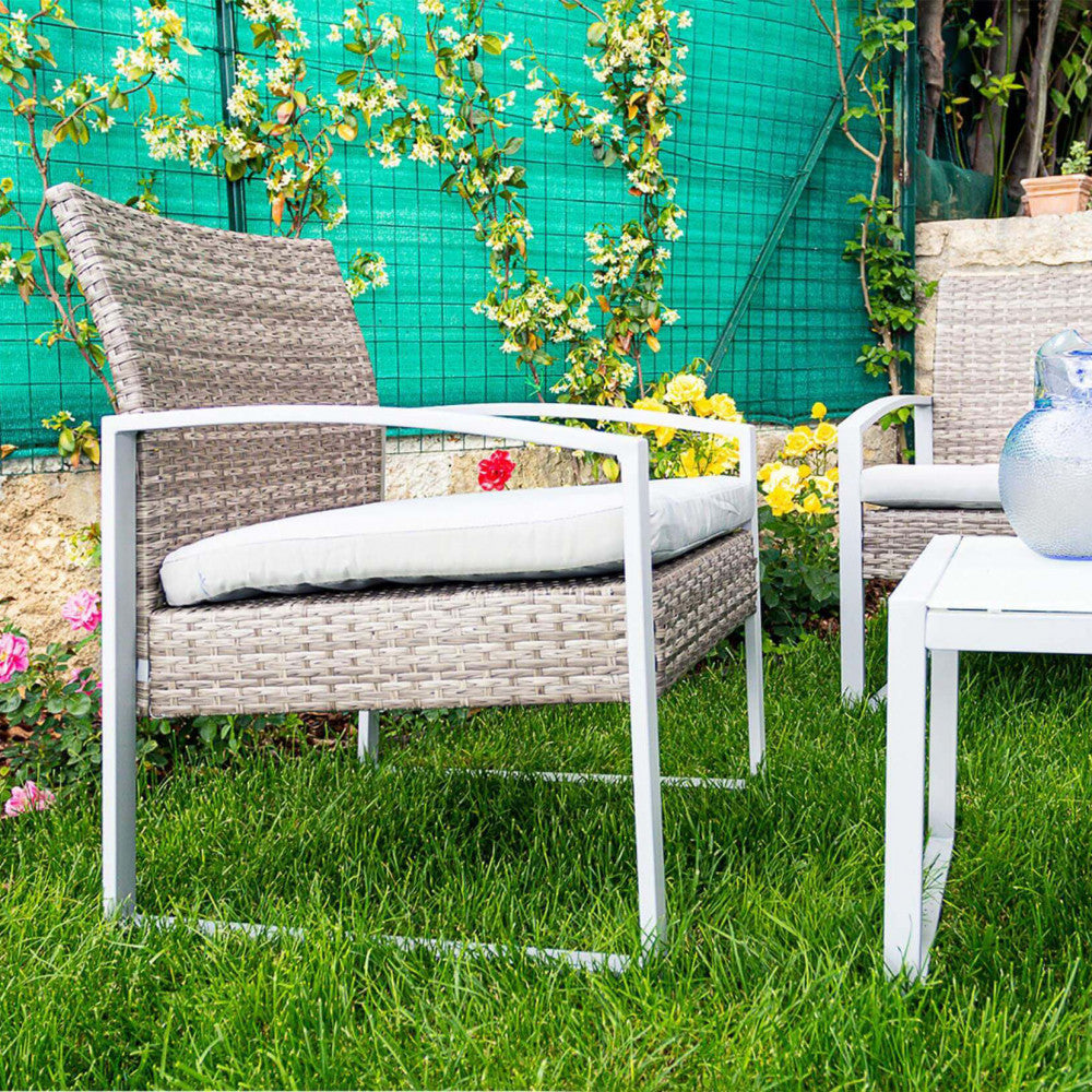 Garden Lounge Set Sofa 2 Sessel und Couchtisch mit Kissen aus braunem Korbgeflecht