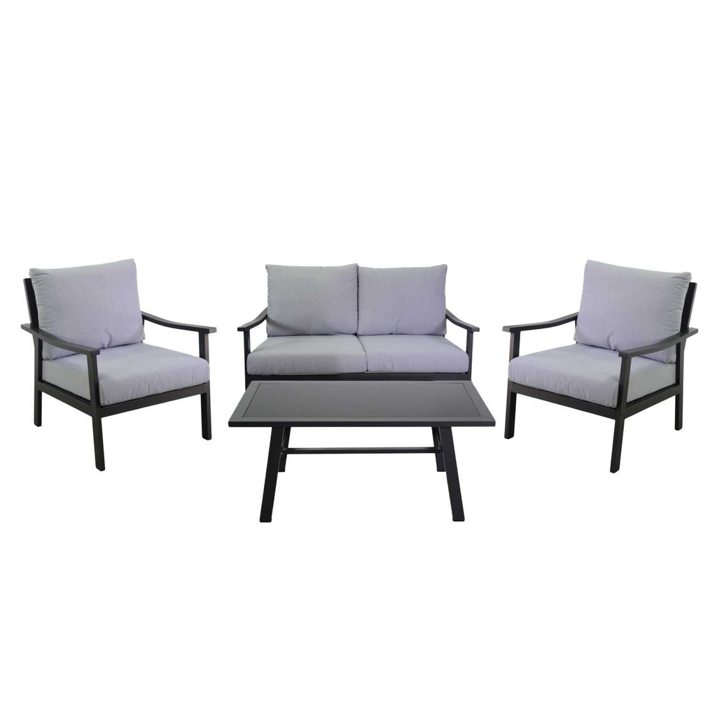 Set Salotto da Giardino Divano 2 Poltrone e Tavolino in Alluminio Shelton Antracite
