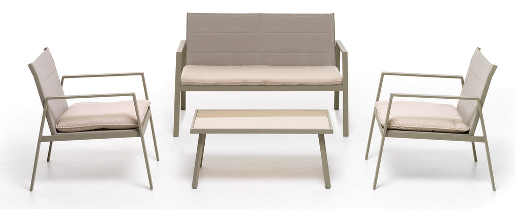 Garden Lounge Set Sofa 2 Sessel und Couchtisch aus Eisen und Textilene Ocean Tortora