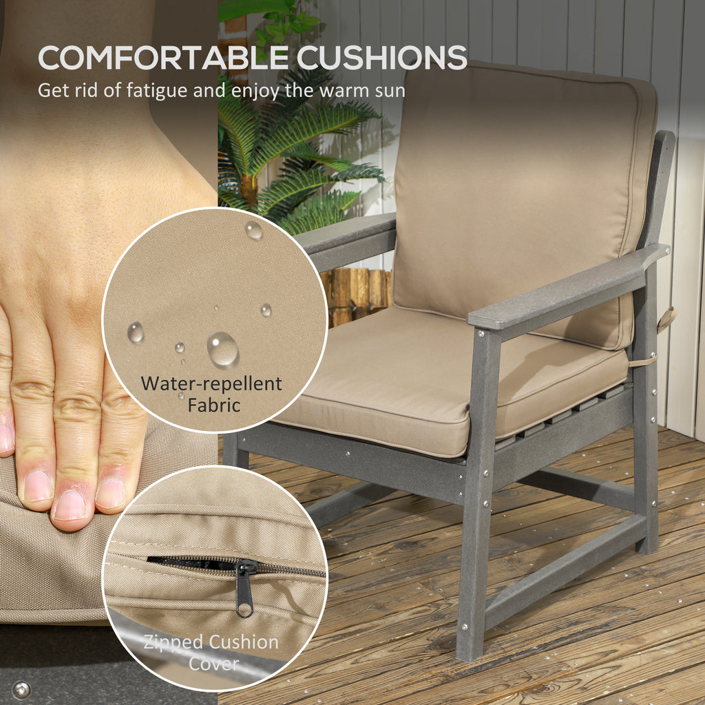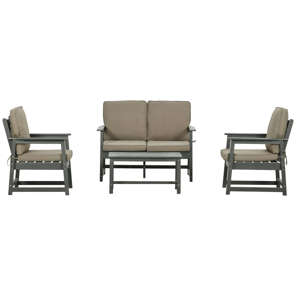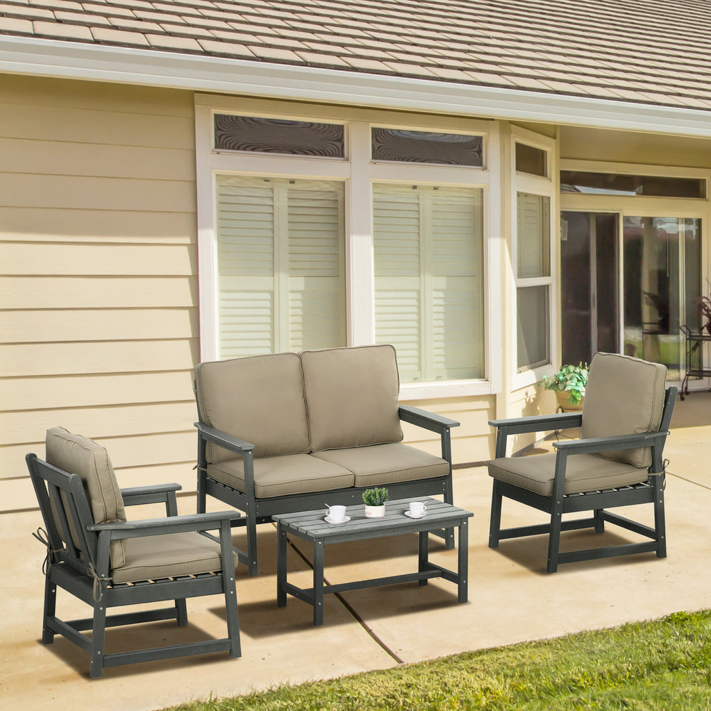 Set Salotto da Giardino Divano 2 Poltrone e Tavolino in HDPE con Cuscini Grigio Scuro