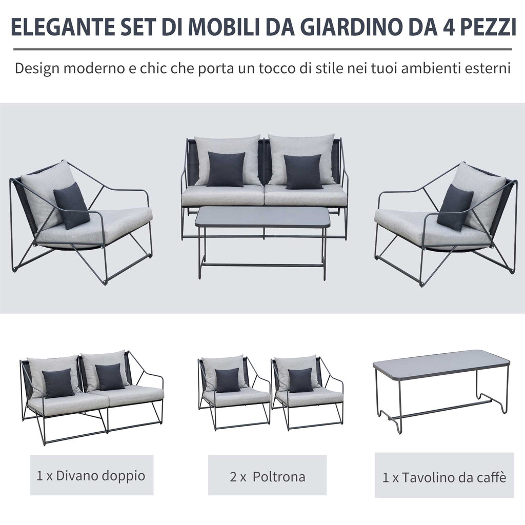 - 4-teiliges Gartenmöbel-Set: 1 x Gartensofa, 2 x Sessel, 1 x Couchtisch