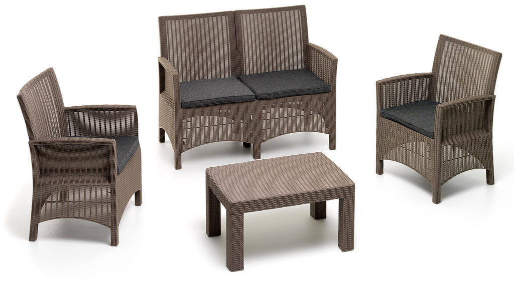 Garden Lounge Set Sofa 2 Sessel und Couchtisch aus Polypropylen in Rattan-Optik London Taupe