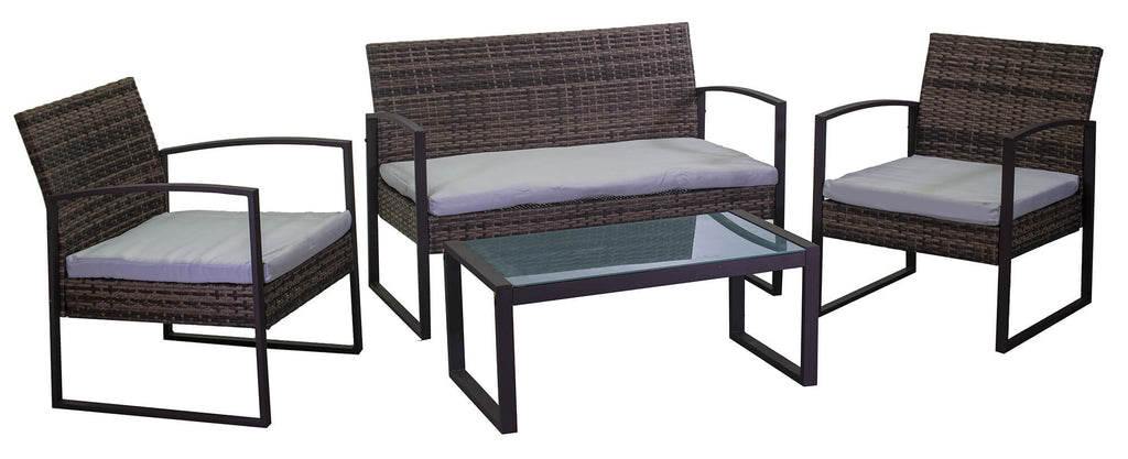 Garden Lounge Set Sofa 2 Sessel und Couchtisch aus braunem Oregon Polyrattan