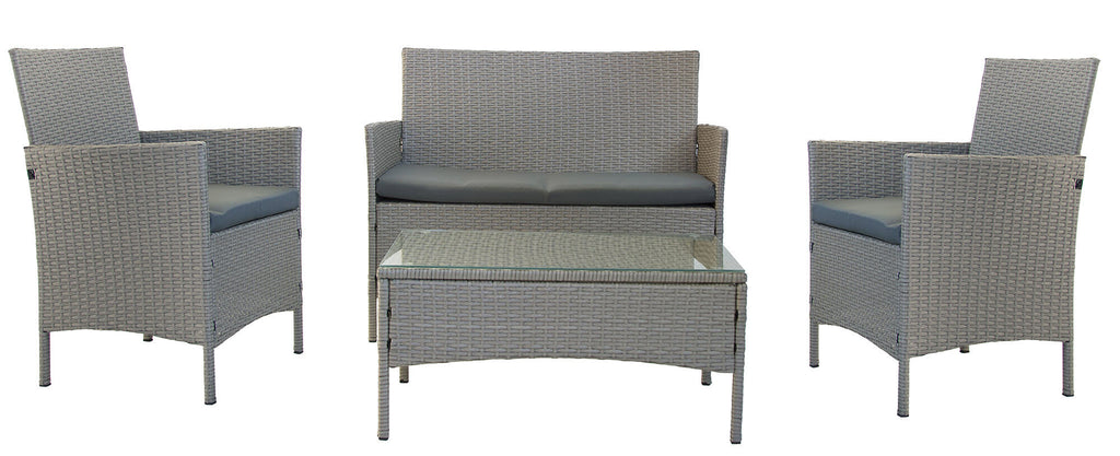 Garden Lounge Set Sofa 2 Sessel und Couchtisch aus grauem Rattan