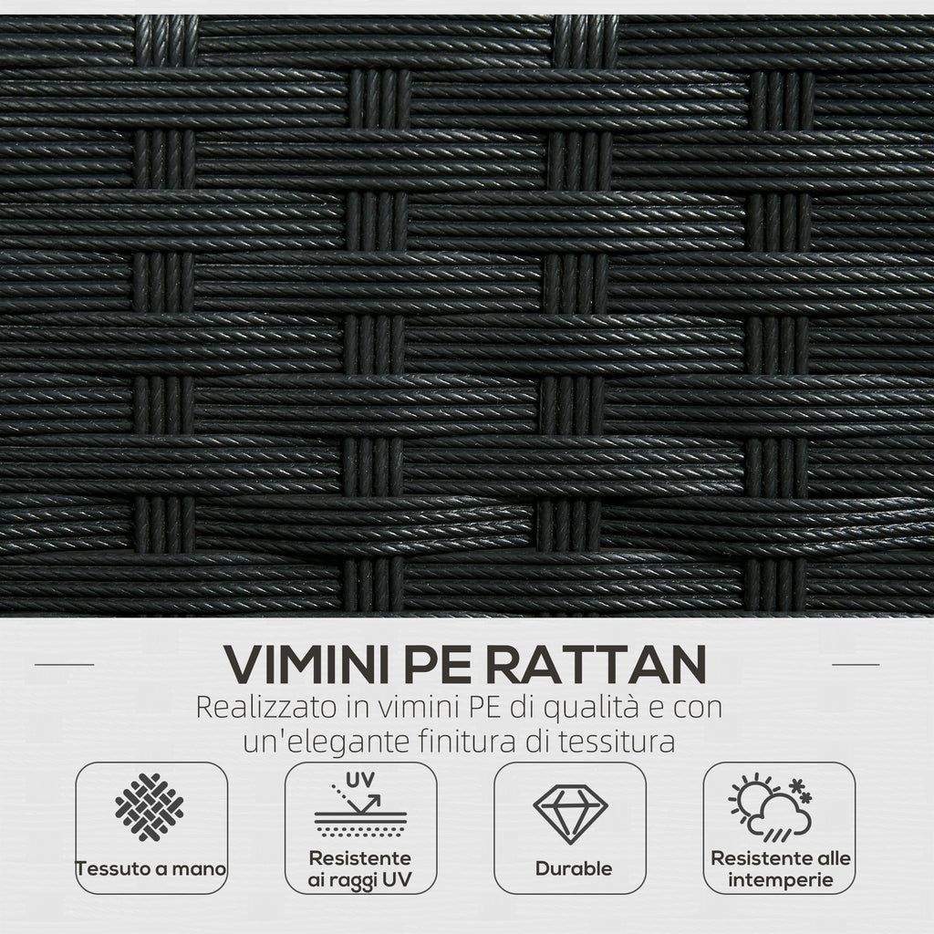 Set Salotto da Giardino Divano 2 Poltrone e Tavolino in Rattan PE Nero