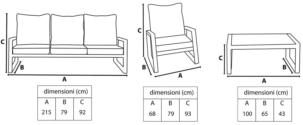 Garden Lounge Set 3-Sitzer-Sofa, 2 Sessel und Mikonos Plus Couchtisch