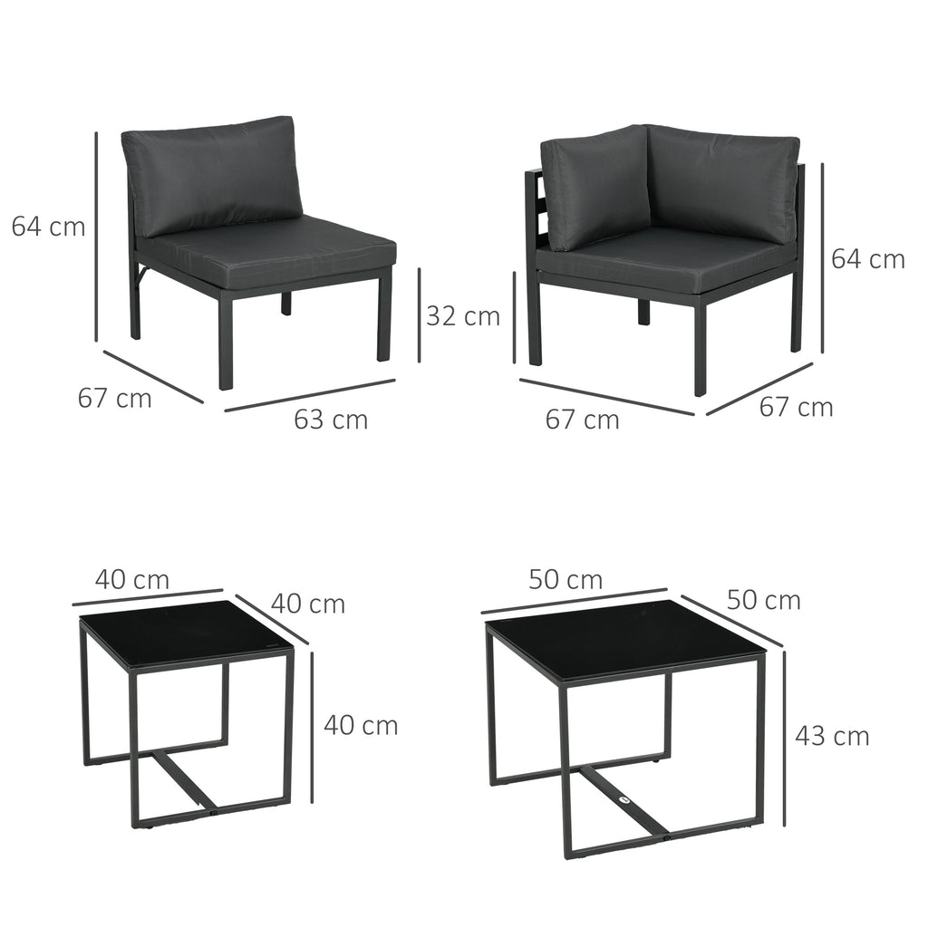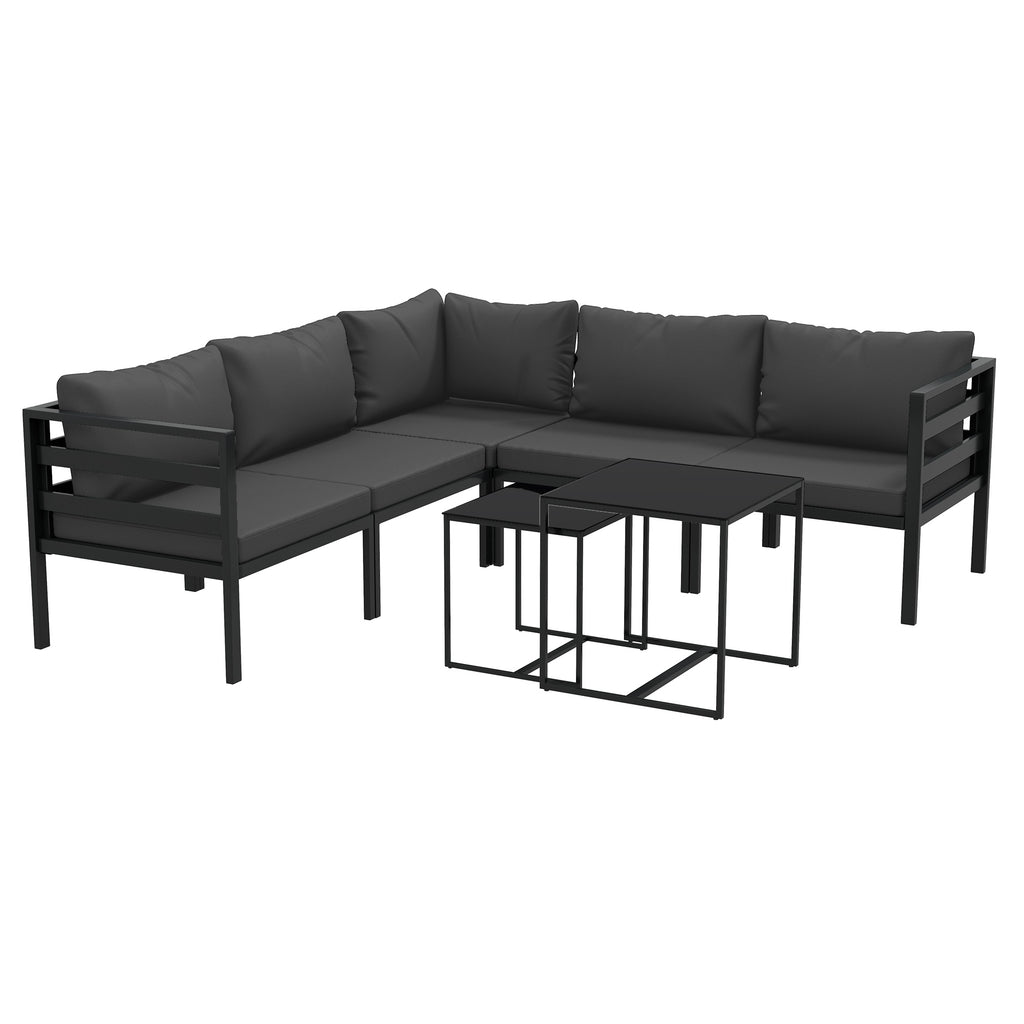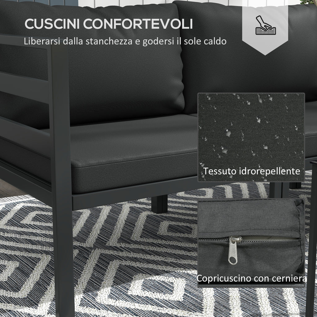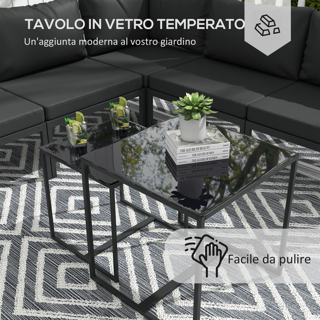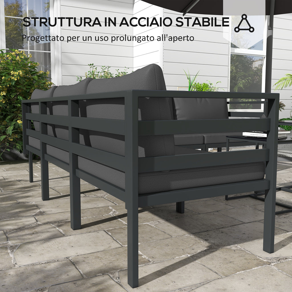 Set Salotto da Giardino Divano Angolare e 2 Tavolini in Acciaio e Poliestere Grigio