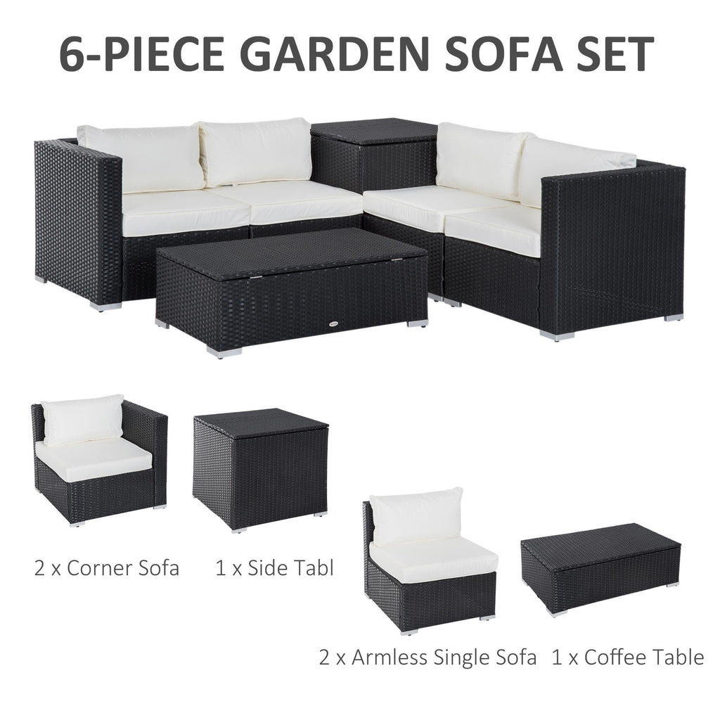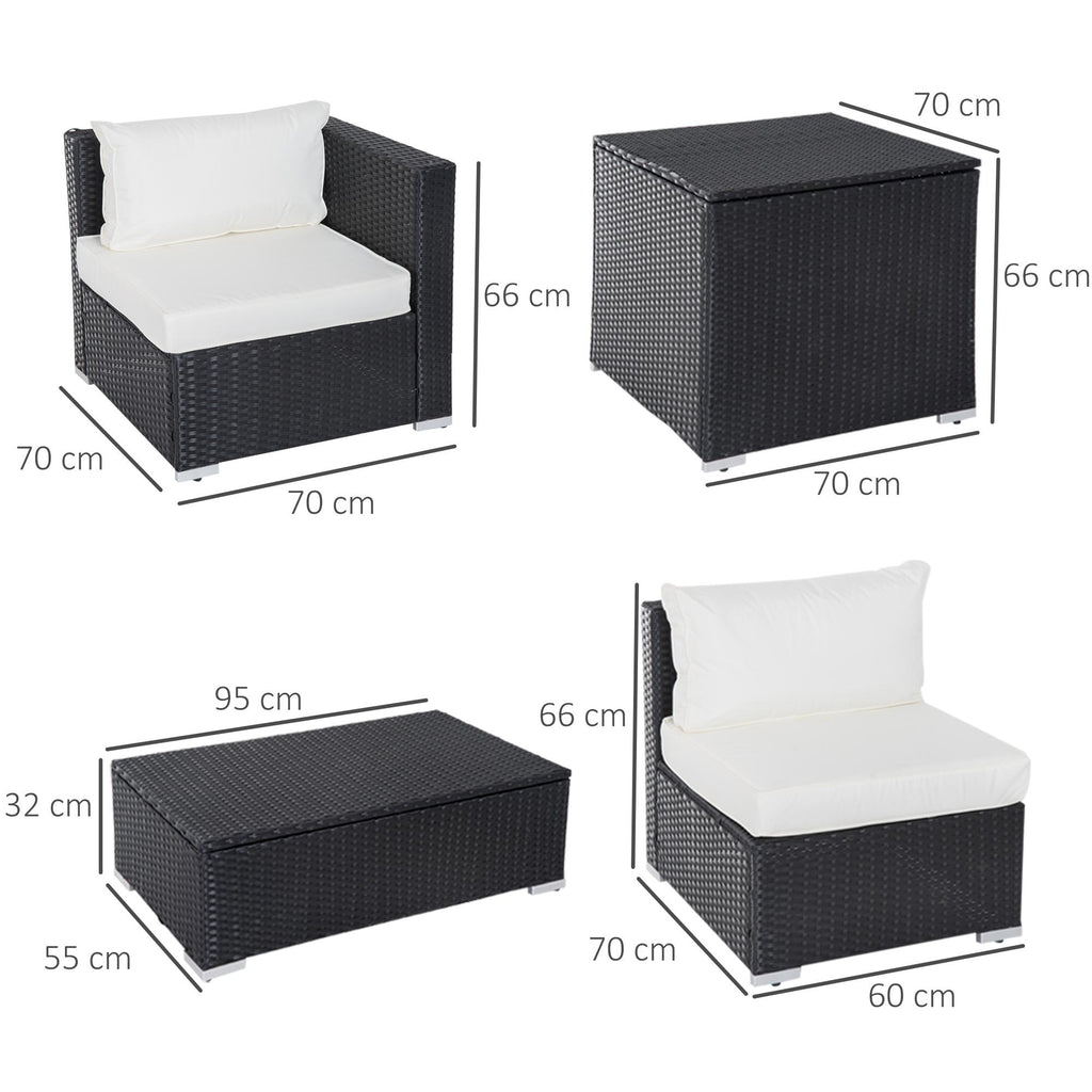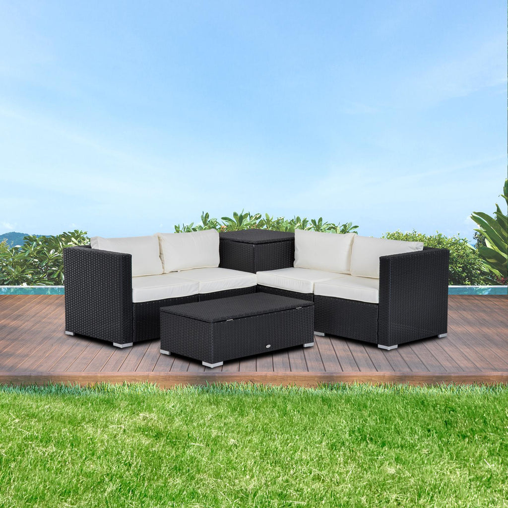 Garten-Lounge-Set aus schwarzem und cremefarbenem Rattan-Ecksofa und Couchtisch