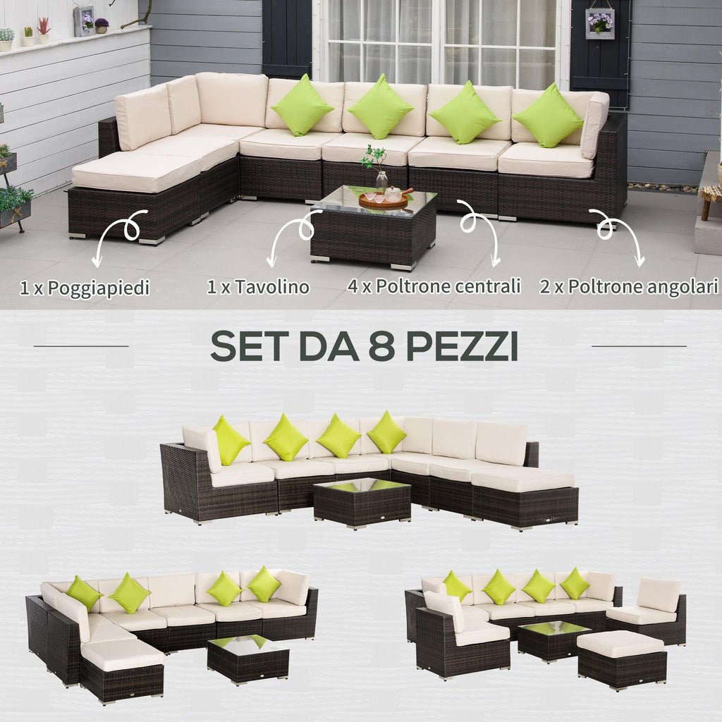 - 8-TEILIGES GARTEN-LOUNGE-SET: Enthält zwei Ecksitze, vier Mittelsitze, einen Fußhocker und einen quadratischen Tisch. Passt problemlos in jeden Außenbereich.