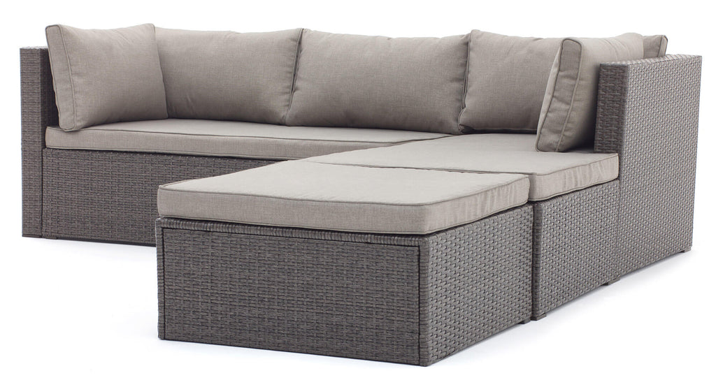 Garden Lounge Set Sofa mit Chaiselongue und Pouf aus grauem Polyrattan