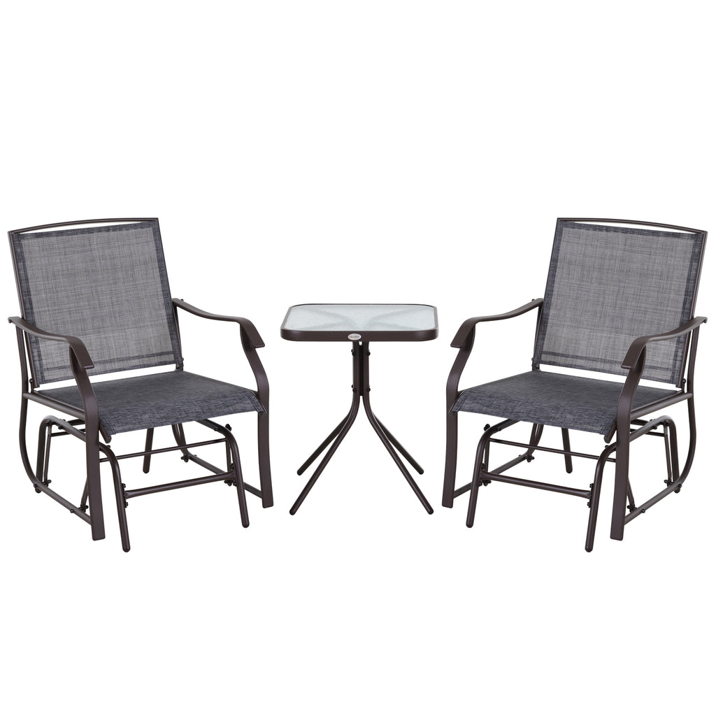 - 3-teiliges Set: 2 Gartenschaukelstühle mit passendem Beistelltisch.