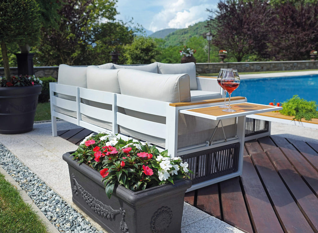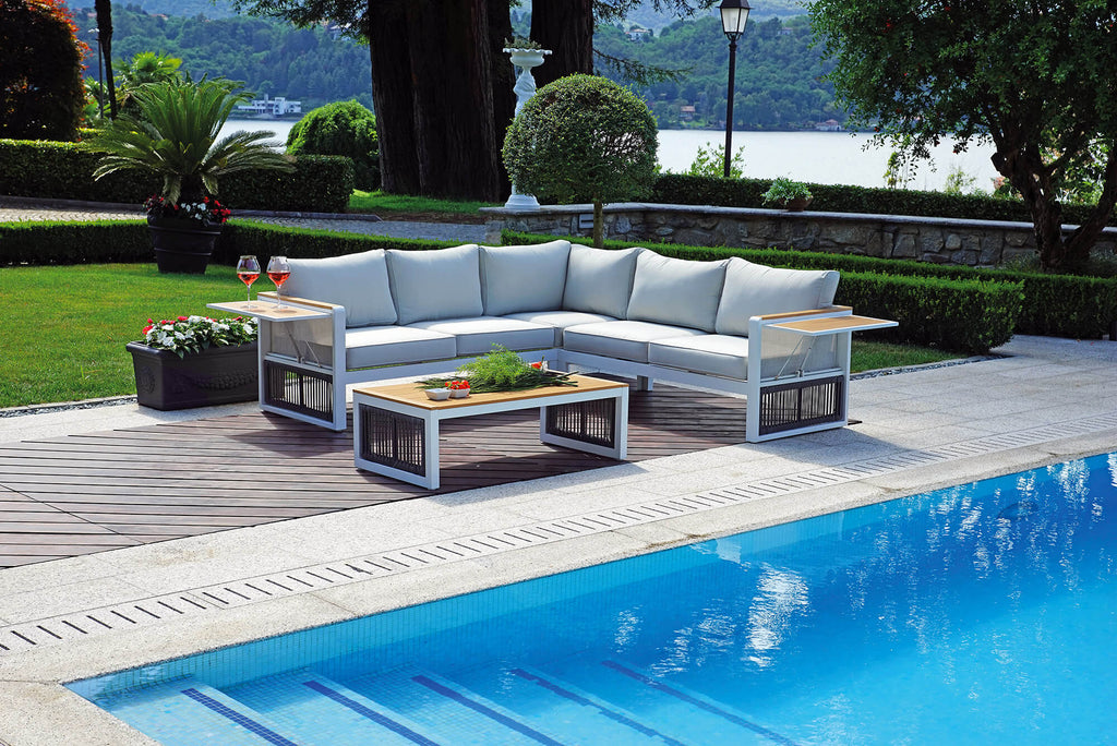 Aluminium Garten Lounge Set Ecksofa und Vorghini Eckcouchtisch Odense