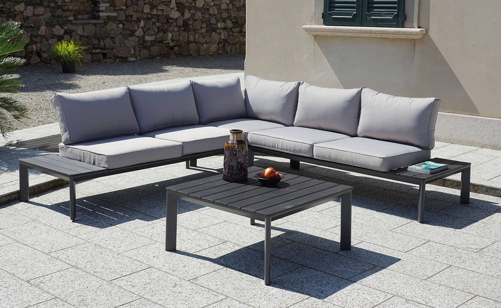 Aluminium Garten Lounge Set Ecksofa und Vorghini Lecco Couchtisch