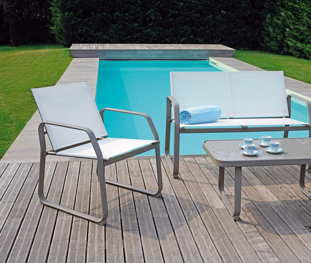- Sitz und Rückenlehne aus Textilene Ecrù