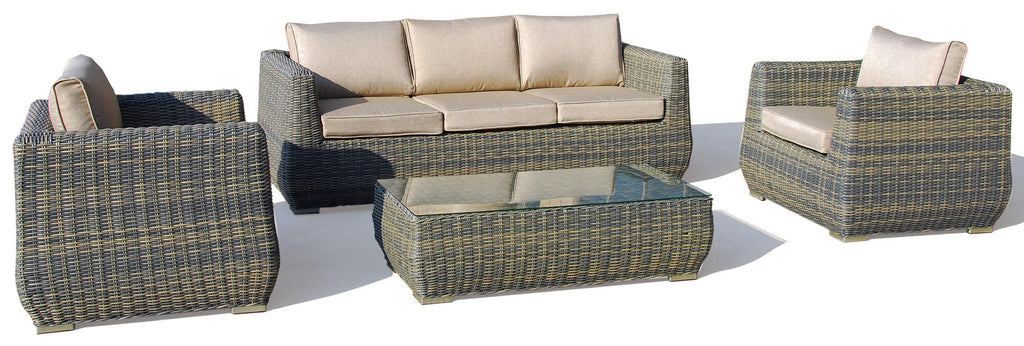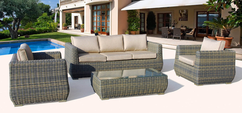 Garten-Lounge-Set aus Polypropylen-Sofa, 2 Sesseln und Bauer-Portofino-Couchtisch