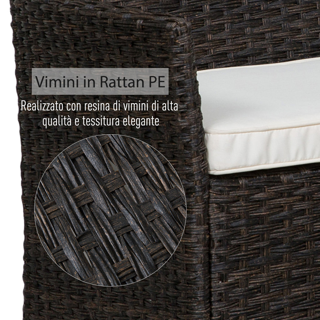 Garten-Lounge-Set aus Rattan-Sofa, 2 Sesseln und schwarz-weißem Aufbewahrungstisch