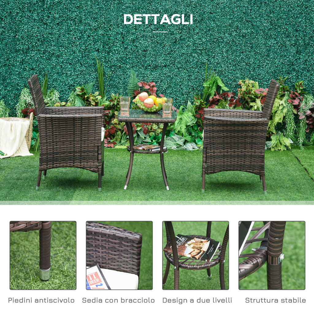 - Gartenmöbel-Set bestehend aus 3 Teilen: einem Tisch und 2 Stühlen.