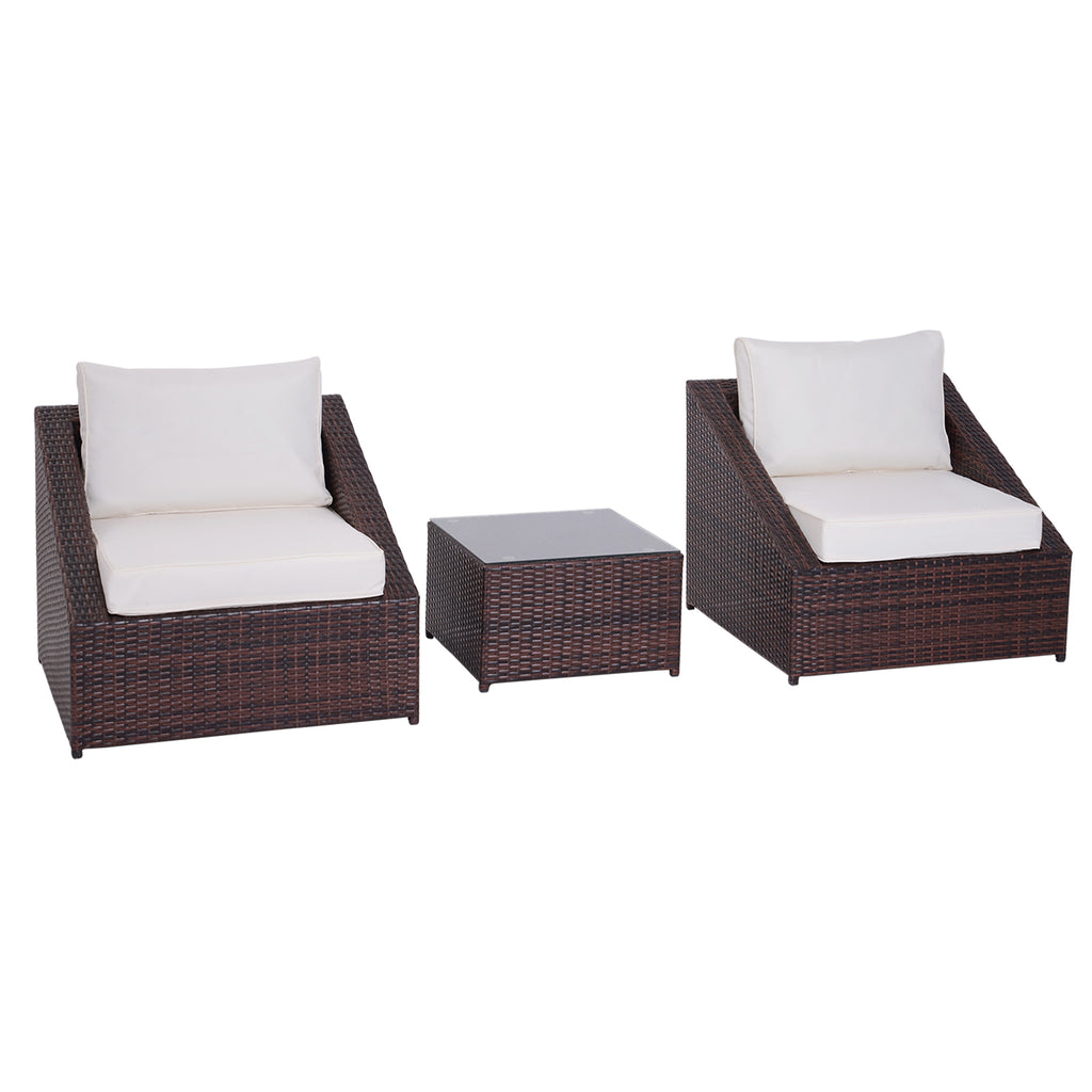 Garten-Lounge-Set aus synthetischem Rattan, 2 Sesseln und braunem Couchtisch