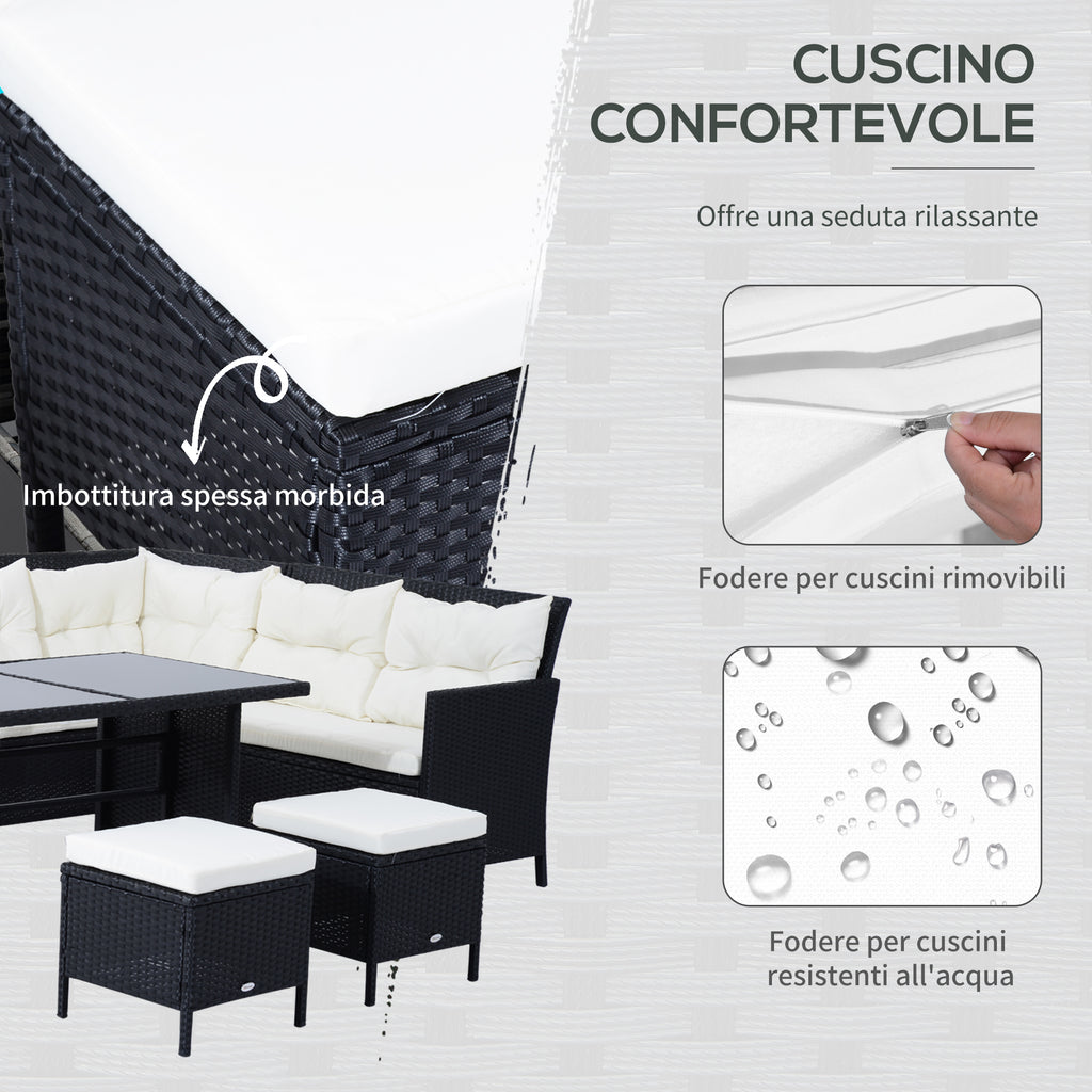 Garten-Lounge-Set aus synthetischem Rattan, 6-teiliges Sofa mit Kissen und schwarzem Couchtisch