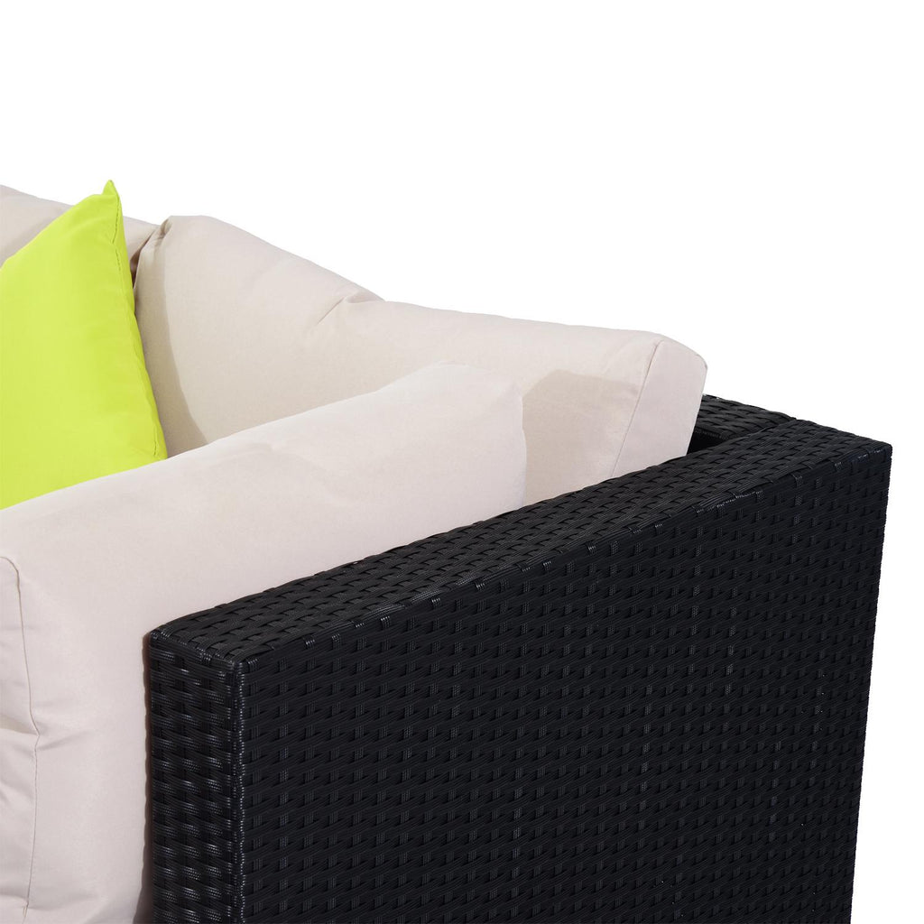 7-teiliges Garten-Lounge-Set aus PE-Rattan, Sofa und Couchtisch mit Kissen, schwarz