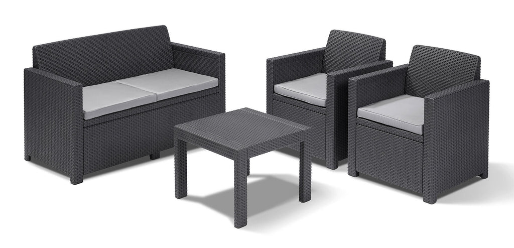 Garten-Lounge-Set aus Kunstharz, Sofa, 2 Sessel und Bauer Alabama-Graphit-Couchtisch