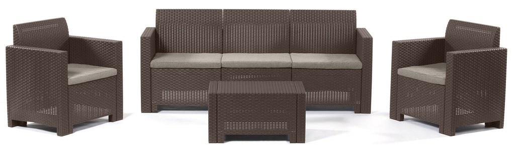 Garten-Lounge-Set aus Kunstharz, Sofa 2 Sessel und Bauer Nebraska 3 brauner Couchtisch