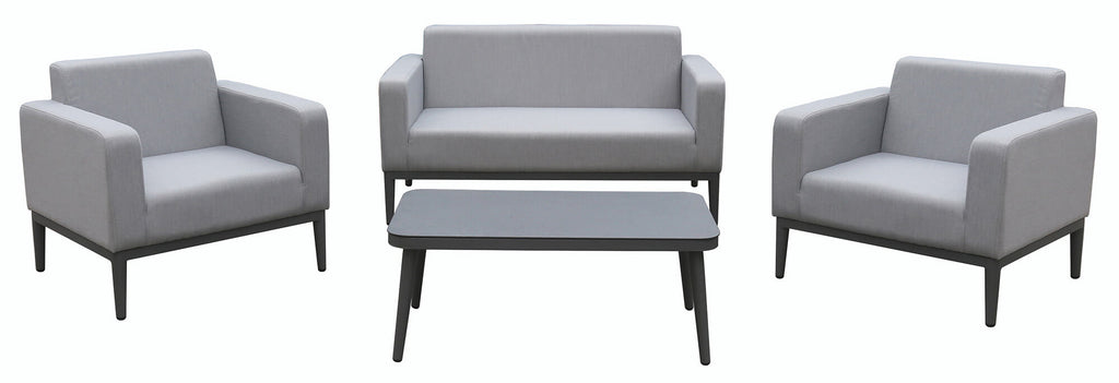 Garden Lounge Set in Bauer Vienna Grey Fabric Sofa 2 Sessel und Couchtisch